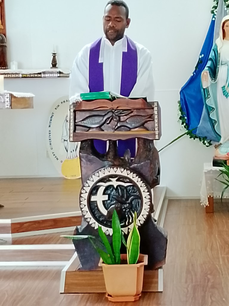 Alaolo is a small community with my Parish and it is situated in the jungle of the Kwaio mountains. Being a Christian community in 2015, the community lacks a Catechist to conduct Sunday services and lead prayers for them. One of the young men of the community sees the need of his community and so decided to to attend trainings for Catechist in Buma Catechist center. After completing 4 block courses, he is now ready to become a catechist.