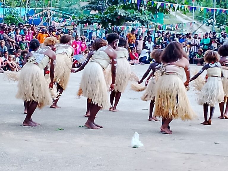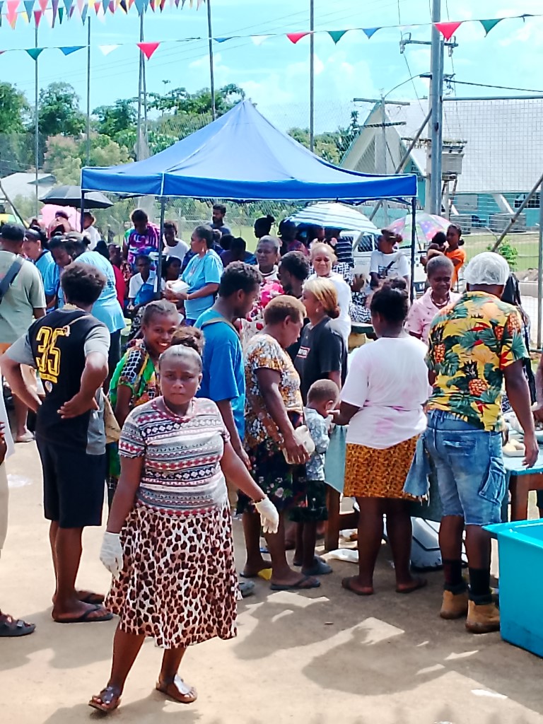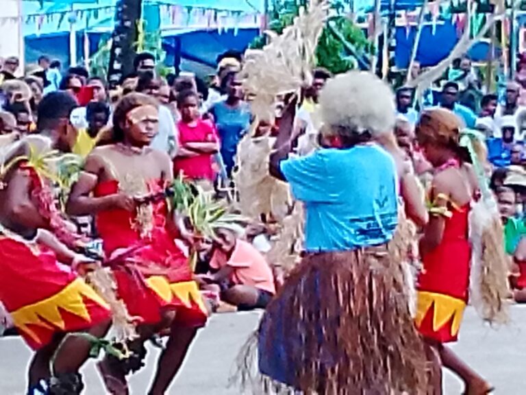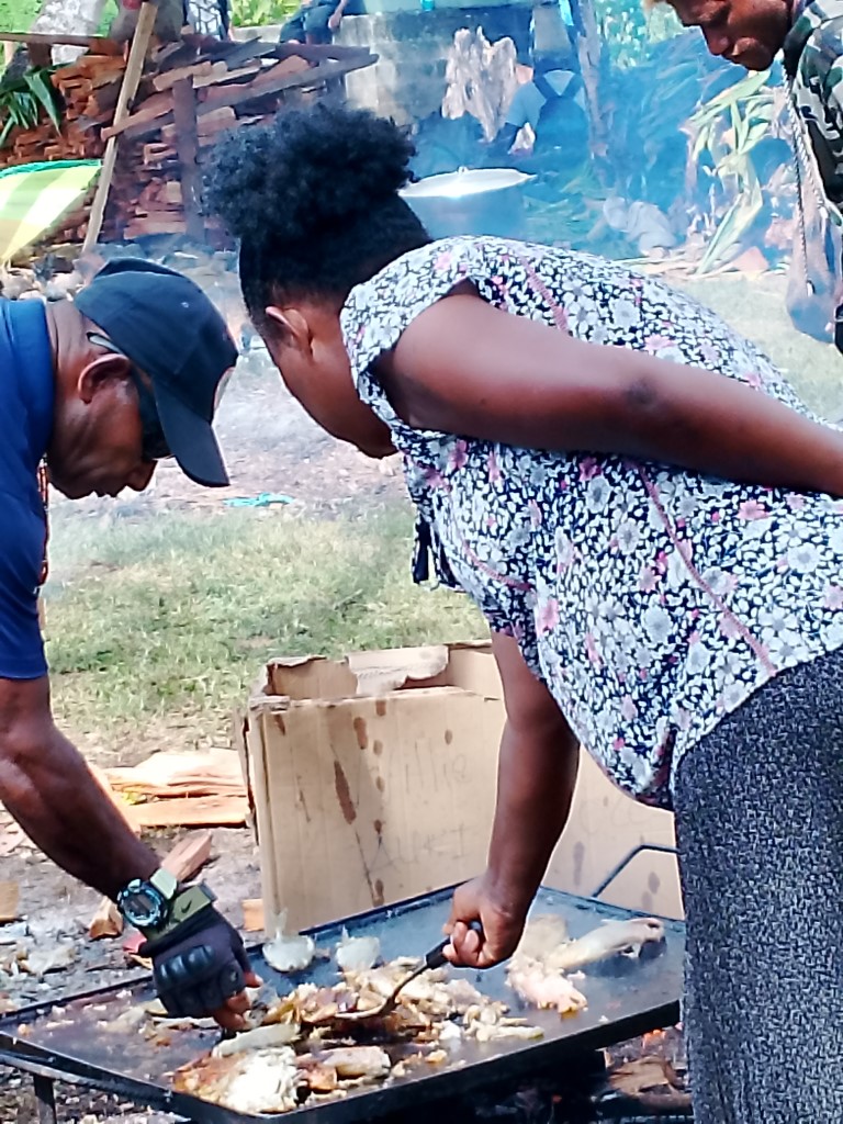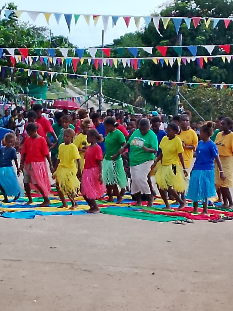 After the consecration celebration ended, in usual custom of Malaita, a huge feasting is put on for all. Every body eats and enjoys themselves with the varieties of foods placed before them. When feasting ends, custom dancing carries on until late in the evening before the program ended.