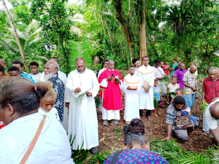 The celebration started outside of the church in a designated place prepared by community for the blessing of palms. After the blessing, the people pick up the palms and process to the church house where the second part of the celebration is carried out. The liturgy of word and Holy eucharist.