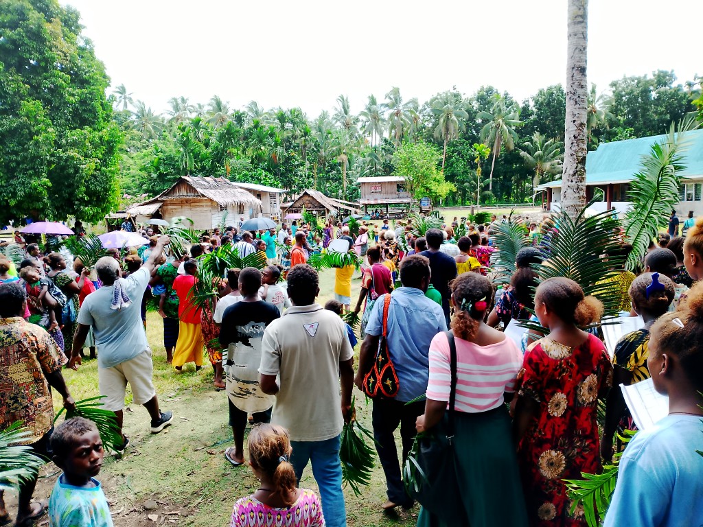 The celebration started outside of the church in a designated place prepared by community for the blessing of palms. After the blessing, the people pick up the palms and process to the church house where the second part of the celebration is carried out. The liturgy of word and Holy eucharist.